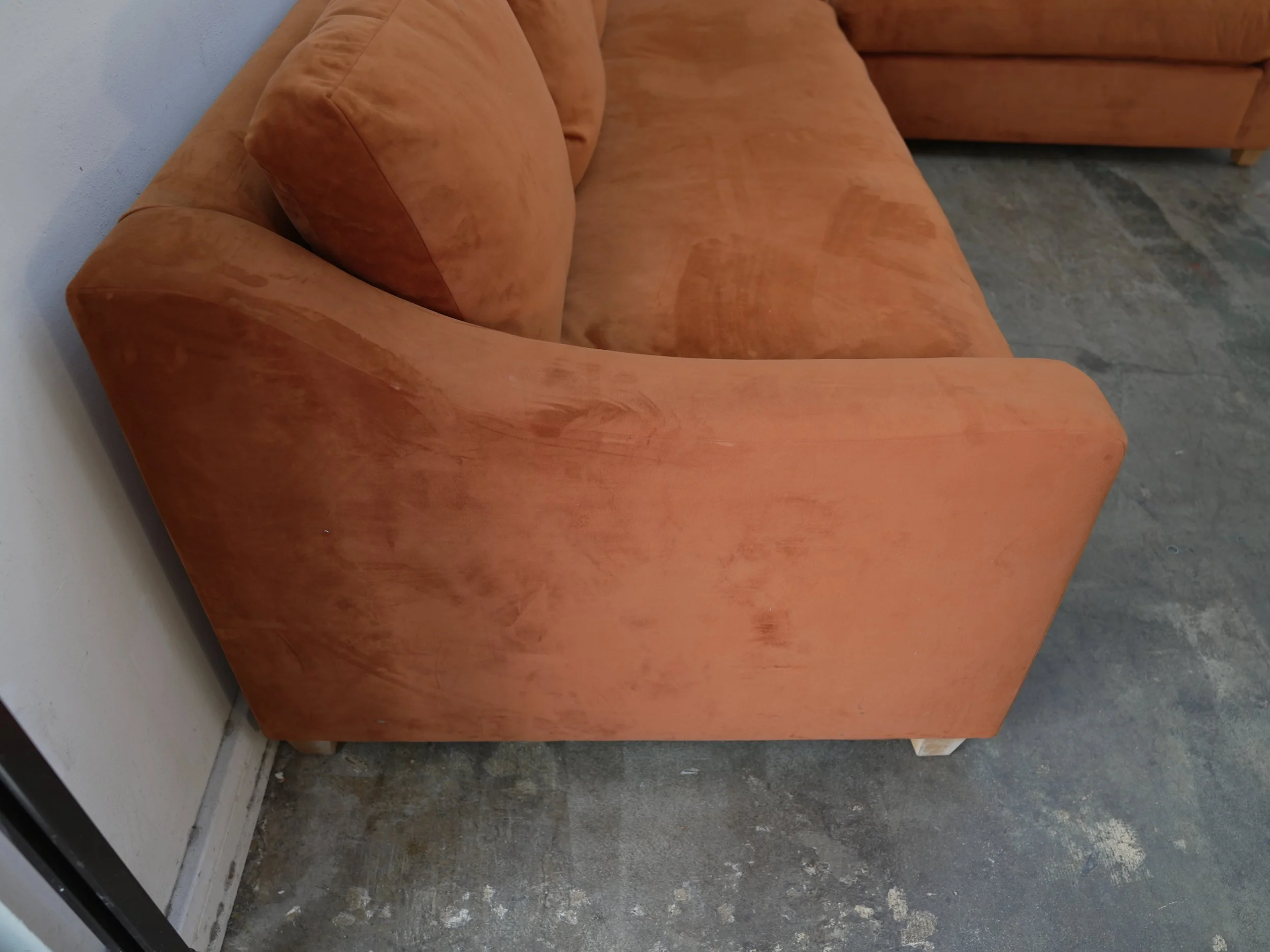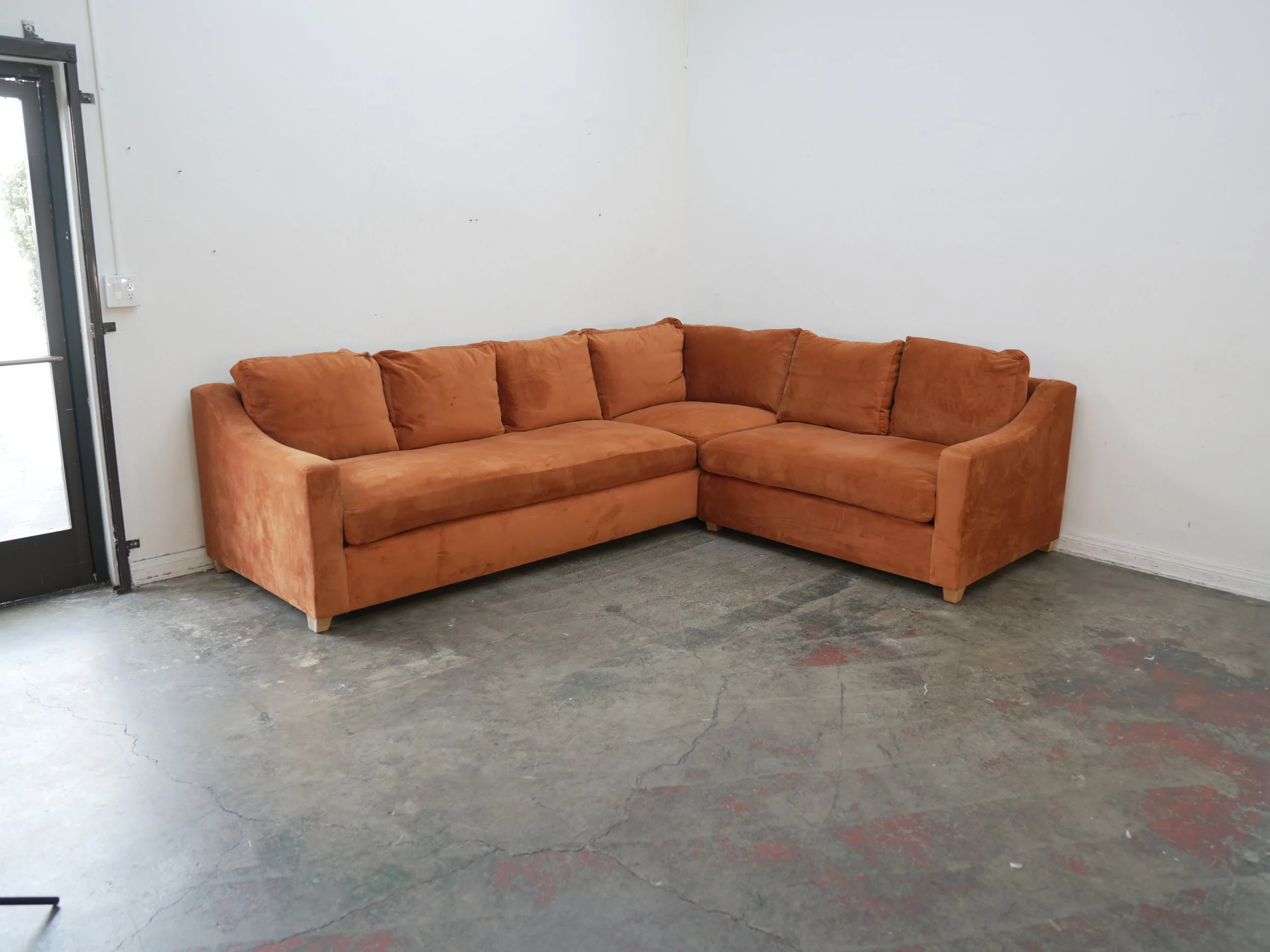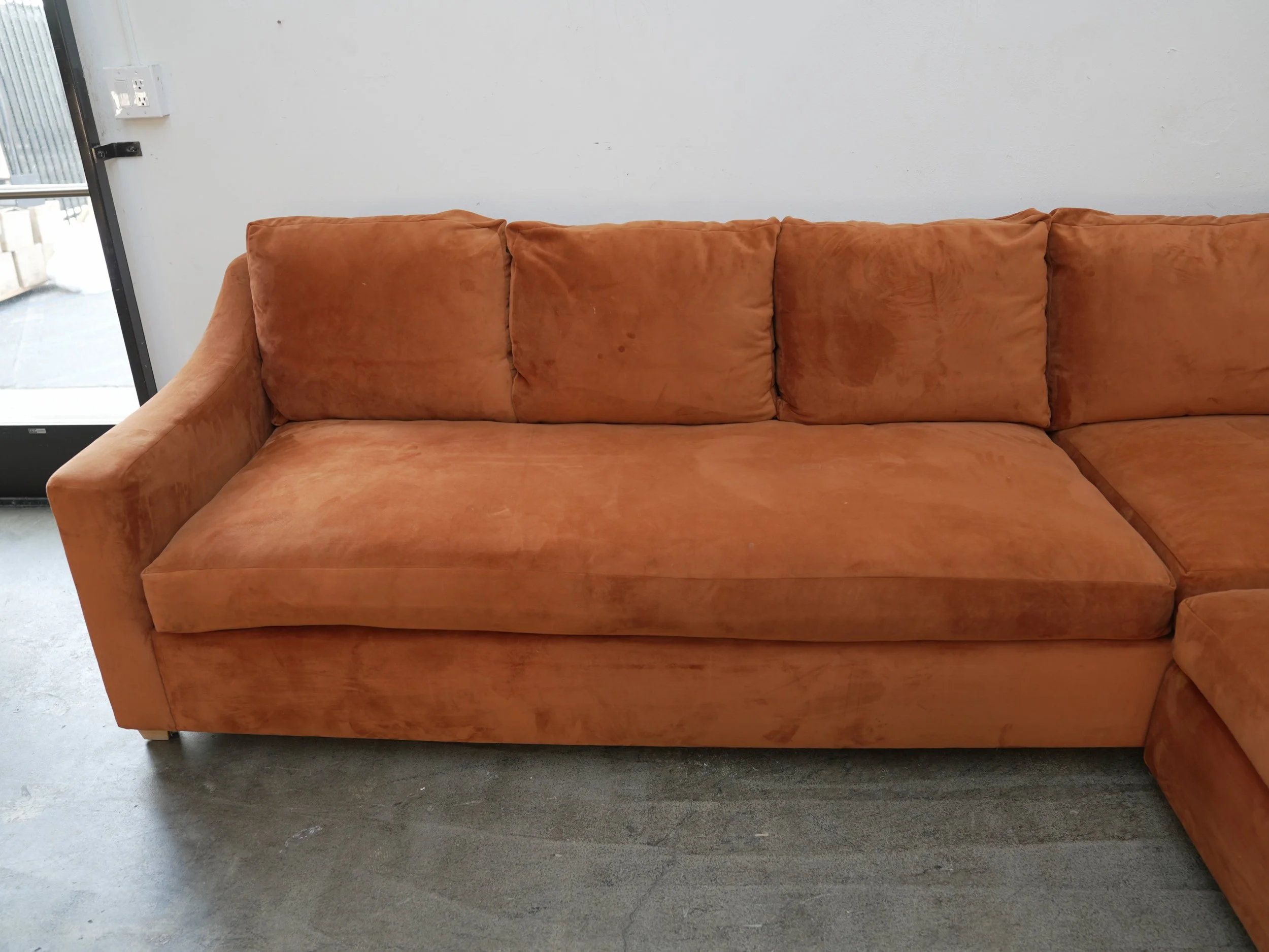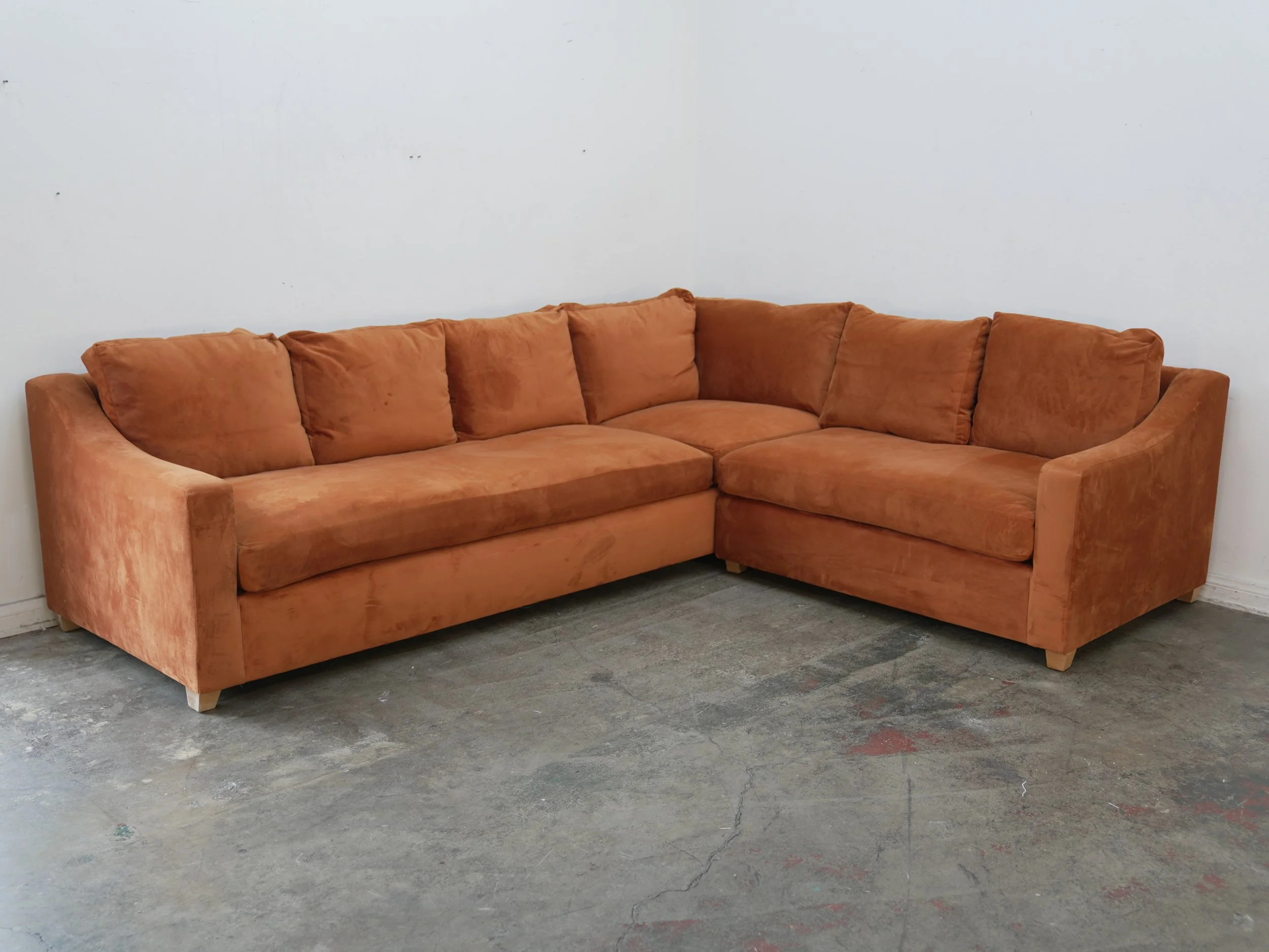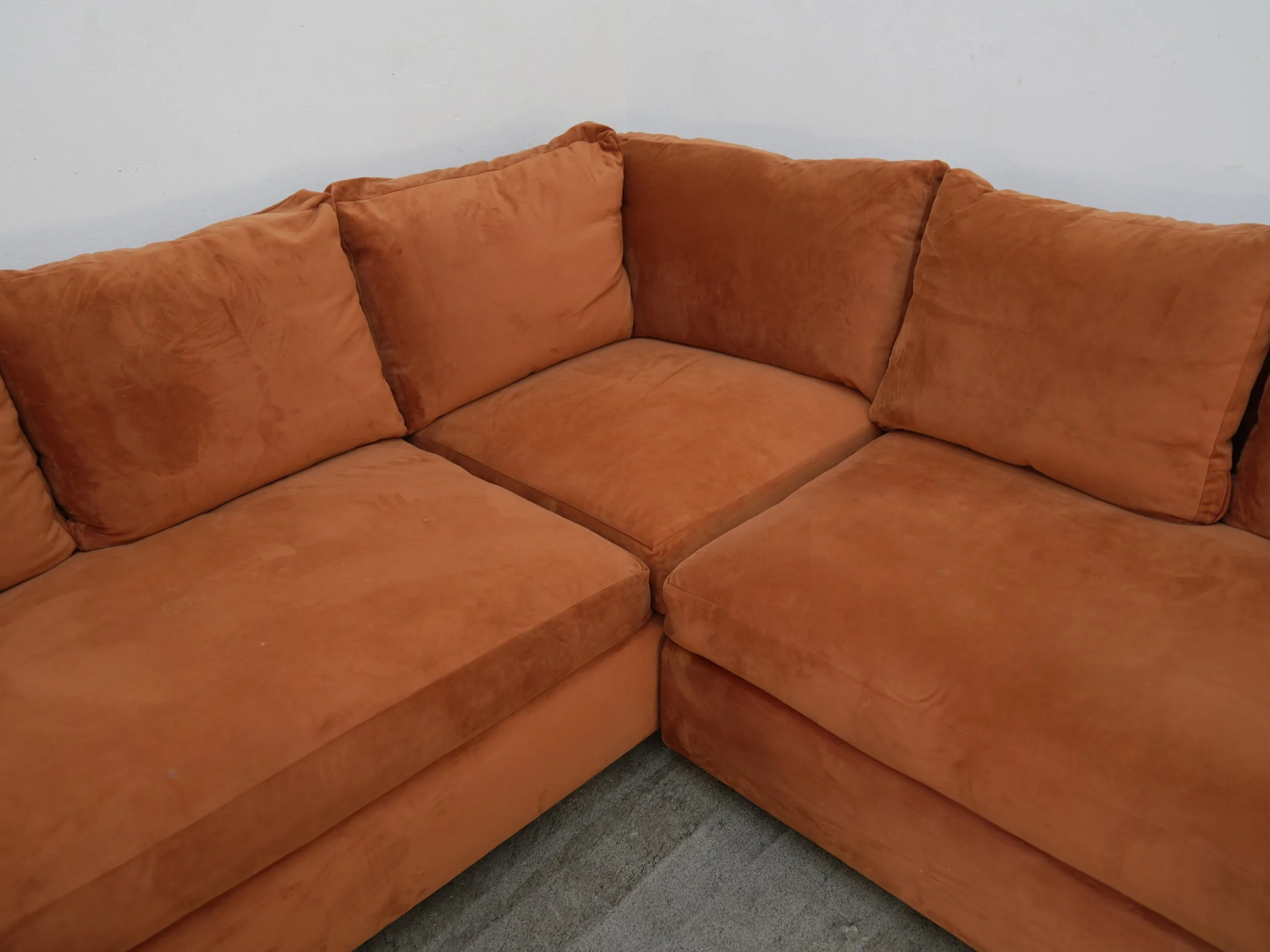 Custom Grey Fabric Corner Sofa w/ Bench Cushions